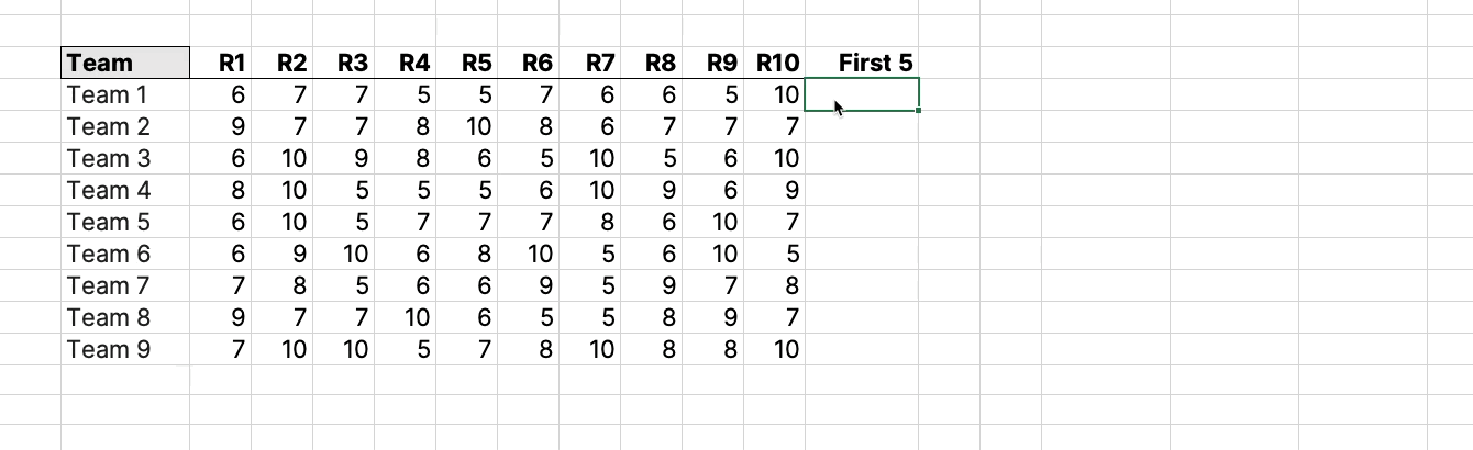 function — is the desired calculation you want to perform. Instead of the sum, for example, you could find the product of the scores. Not sure why you’d do that, but you can.