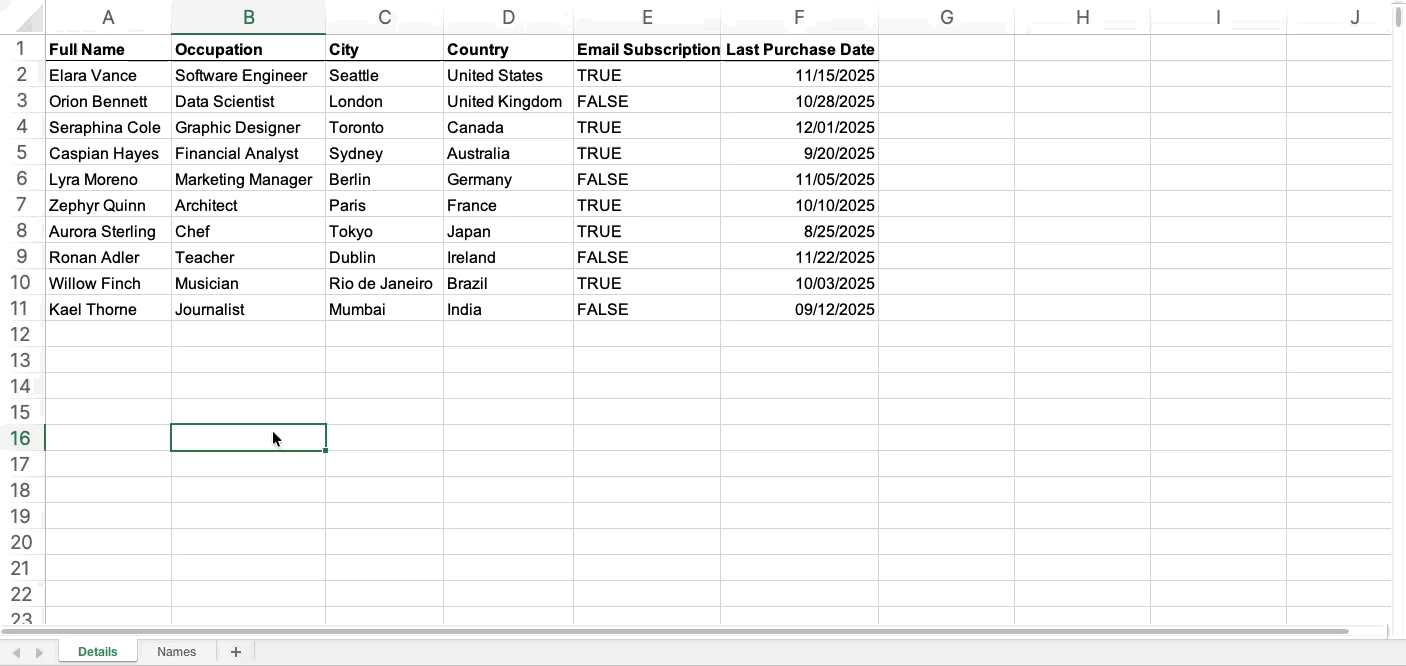 Sometimes you want to pull data, e.g., the names in this table in the first column, from one sheet into another.
