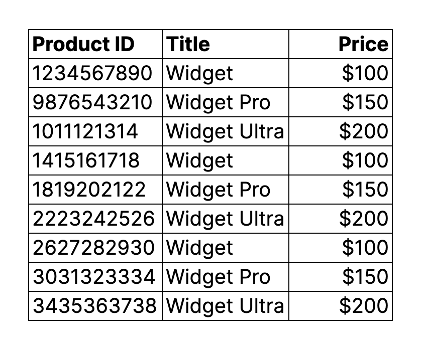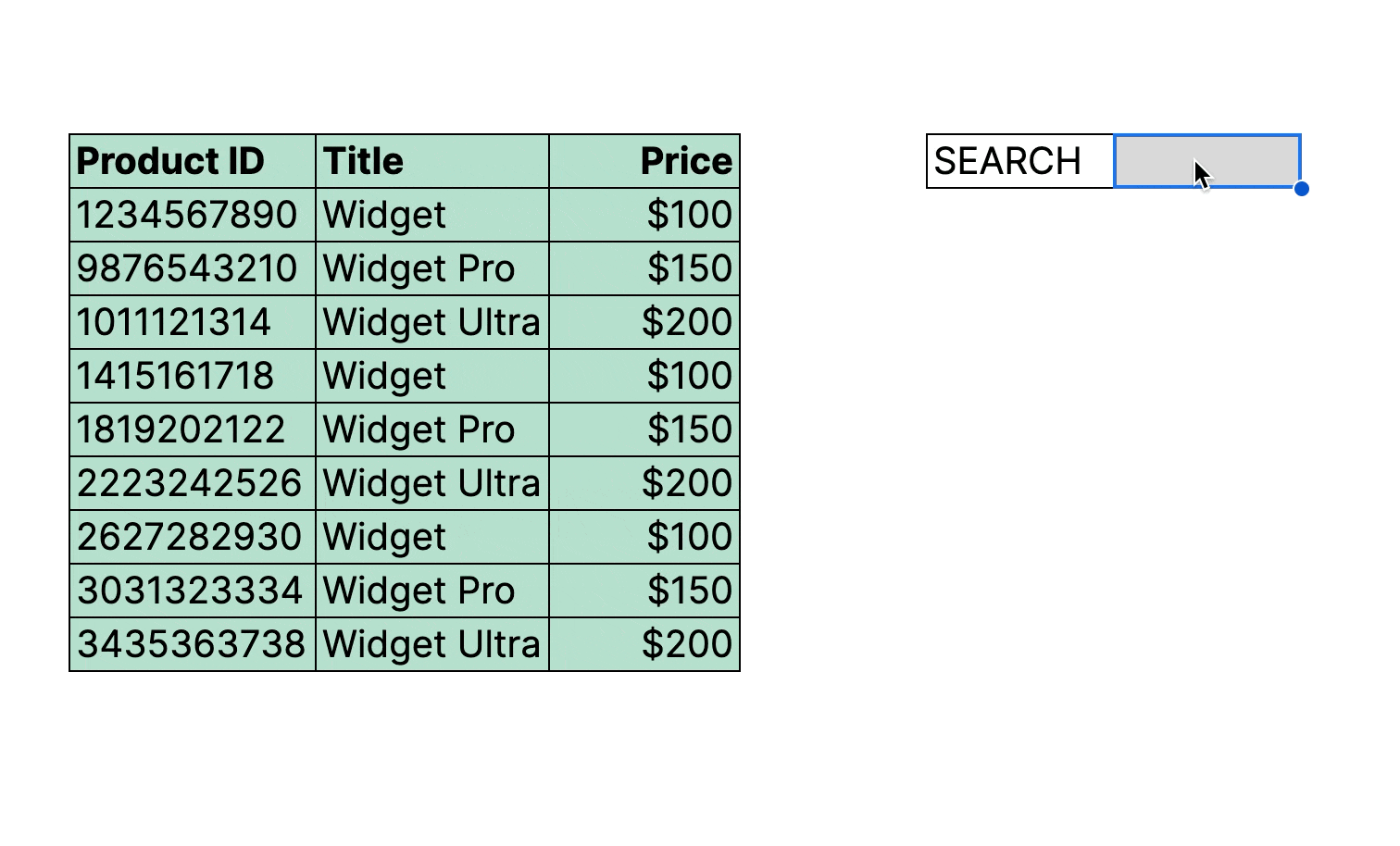 You want to highlight rows with specific titles, say, “Widget” or “Widget Pro,” etc.