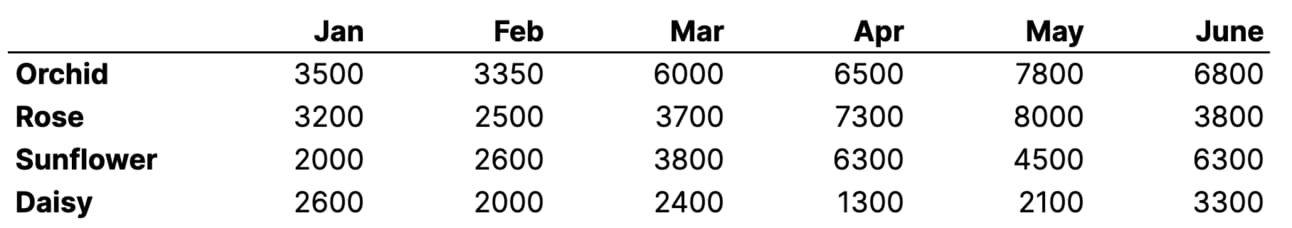 2. Add a Trend column that’ll show the trend in sales of each individual flower variety inside a single cell
