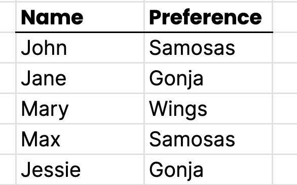 For example, you asked people for their dietary preferences for an event, and the results looked something like this: