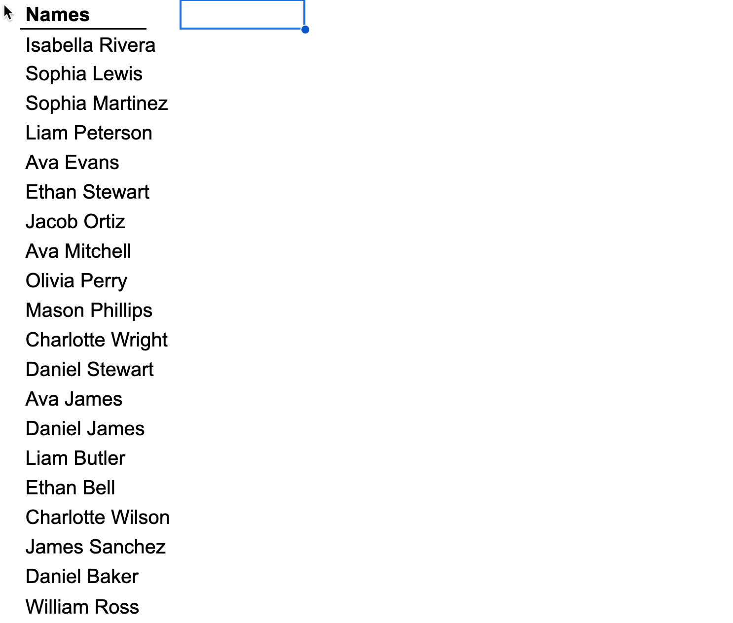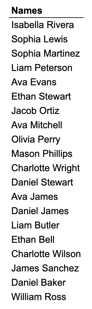 range: the list of names
